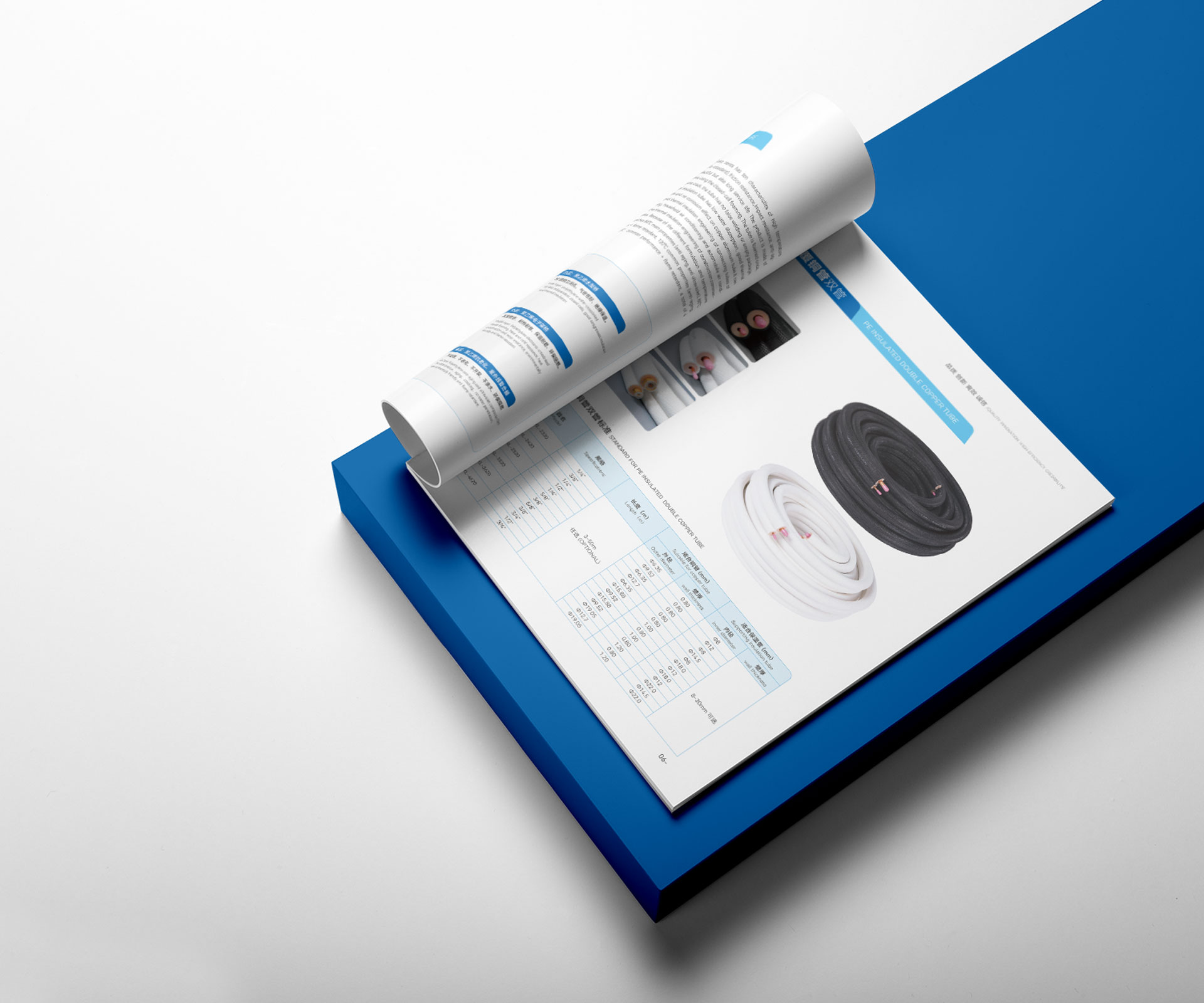 3. 冷色系專業視覺設計: 設計上緊扣行業屬性,主色調采用代表制冷、科技與專業的藍色系及灰色系,營造冷靜、可靠、高效的視覺氛圍。運用清晰的信息圖表、技術參數對比表及系統原理示意圖,將復雜的制冷循環、能效數據等轉化為易于理解的視覺語言。